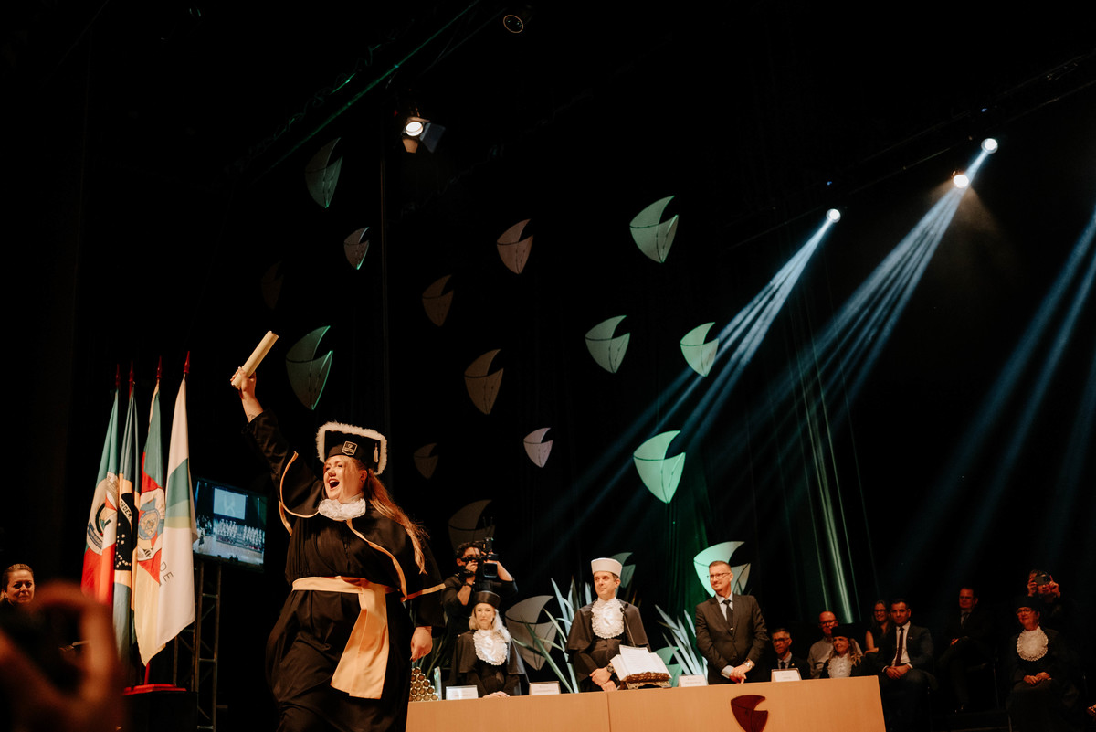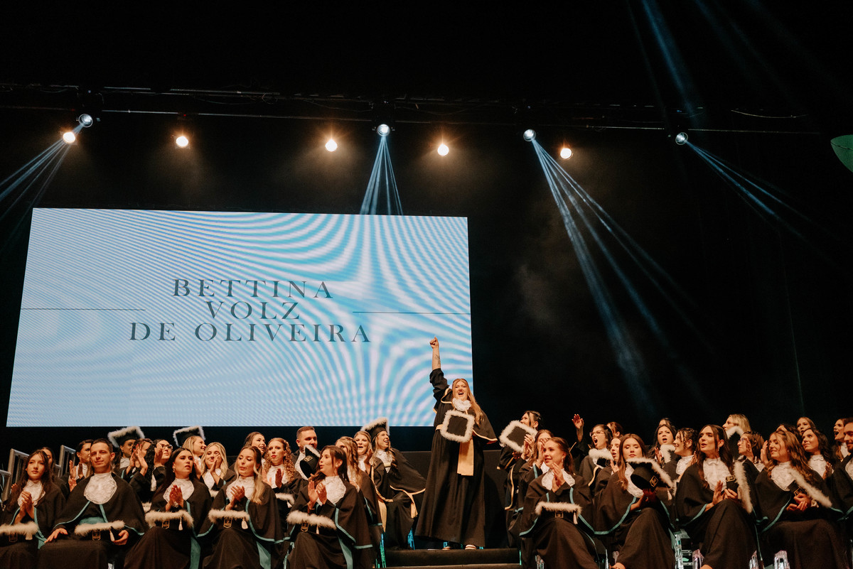 A colação de grau aconteceu na Universidade Feevale, reunindo familiares, amigos e colegas para celebrar essa nova etapa.