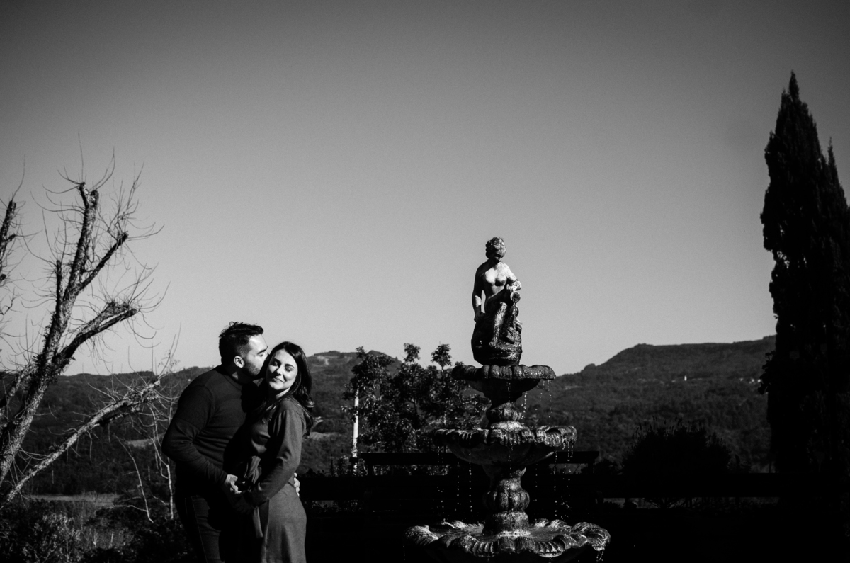 Iniciamos o ensaio no Le Jardin, um dos parques mais bonitos de Gramado, florido e com um ar puríssimo. Aproveitamos a baixa de movimento no horário escolhido, exploramos ao máximo. Partimos dali para o principal ponto turístico da cidade, o Lago Negro sempre reserva uma luz particular e aquele contraste com muitas sombras - exatamente como eu adoro.