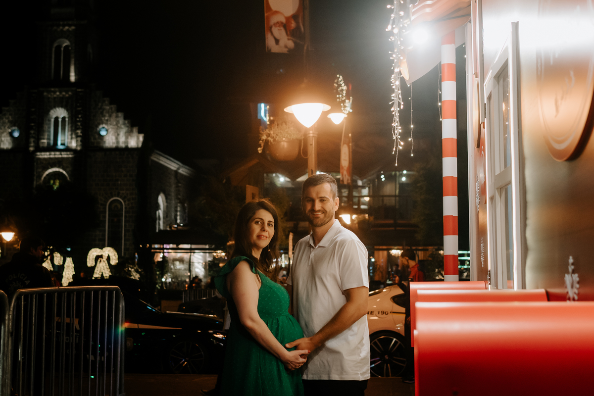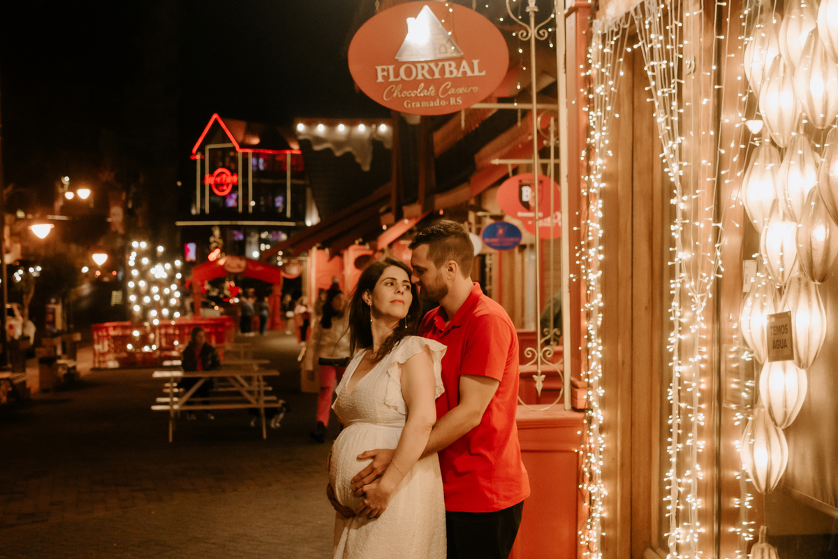 Registrar a doce espera de um bebê é sempre especial, e quando esse momento acontece em meio à magia do Natal Luz de Gramado, tudo se torna ainda mais encantador! O ensaio de gestante da Janaina e do Cleverson, à espera da Milena, foi realizado à noite, com as luzes e o clima natalino da cidade proporcionando um cenário perfeito para capturar esse momento único.