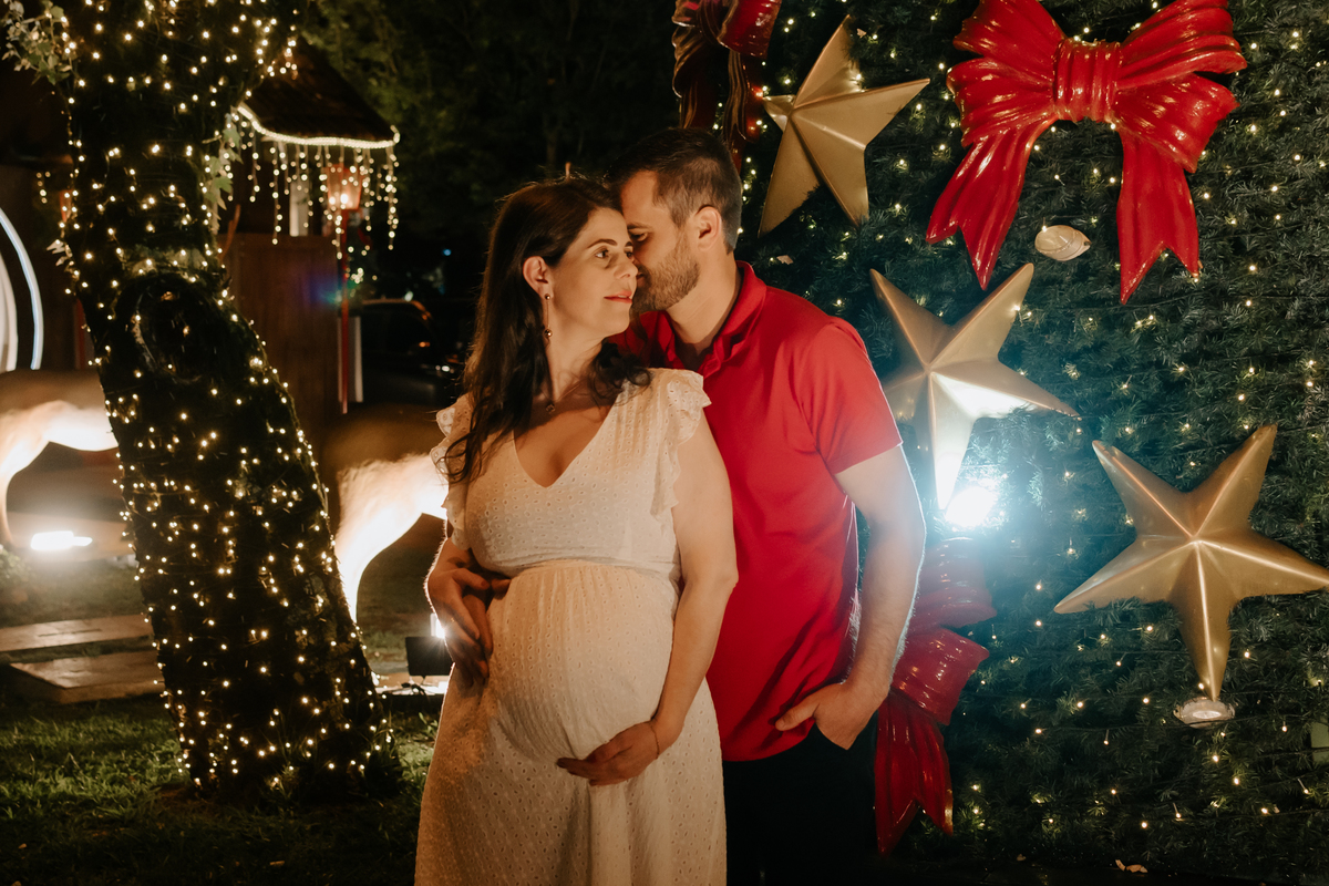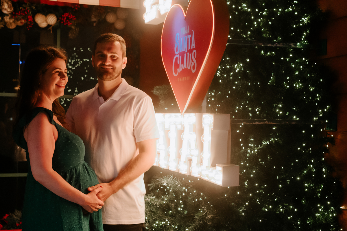 A delicadeza da espera, o brilho nos olhos e o carinho entre eles tornaram cada clique ainda mais especial. As luzes do Natal Luz deram um toque de magia às fotos, reforçando a atmosfera de amor e expectativa para a chegada da Milena.