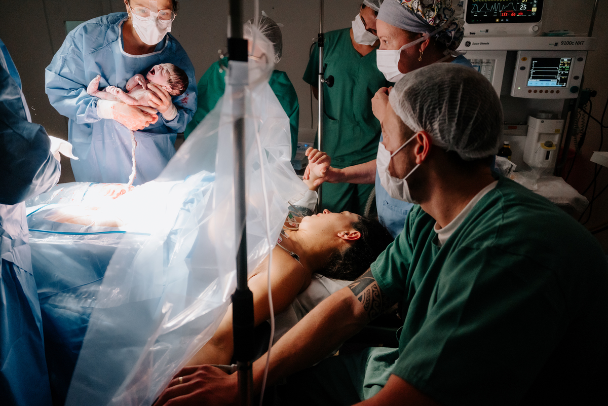 Pensando nisso, após quase seis horas na mesma situação, a bolsa foi rompida. A partir dali o tempo passou ainda mais rápido. Cesárea. Corremos, trocamos de roupa, nos preparamos. Equipe hospitalar prepara a sala, nós aguardamos do lado de fora e o sinal é dado.