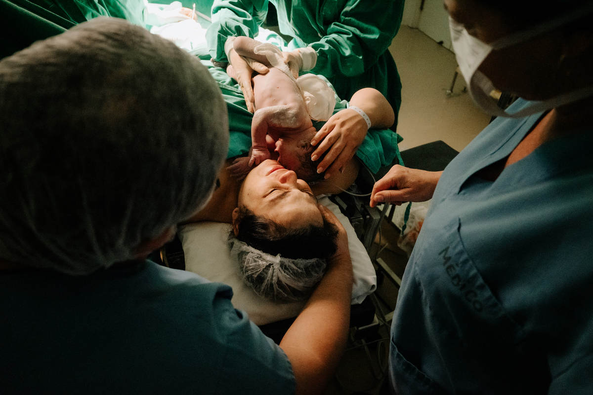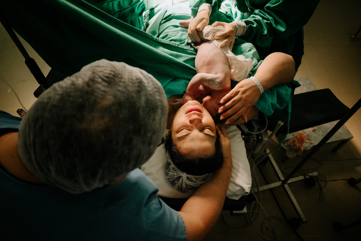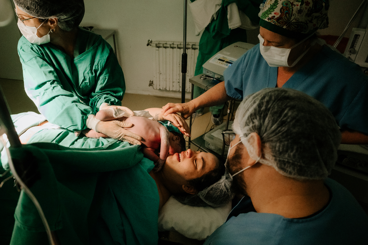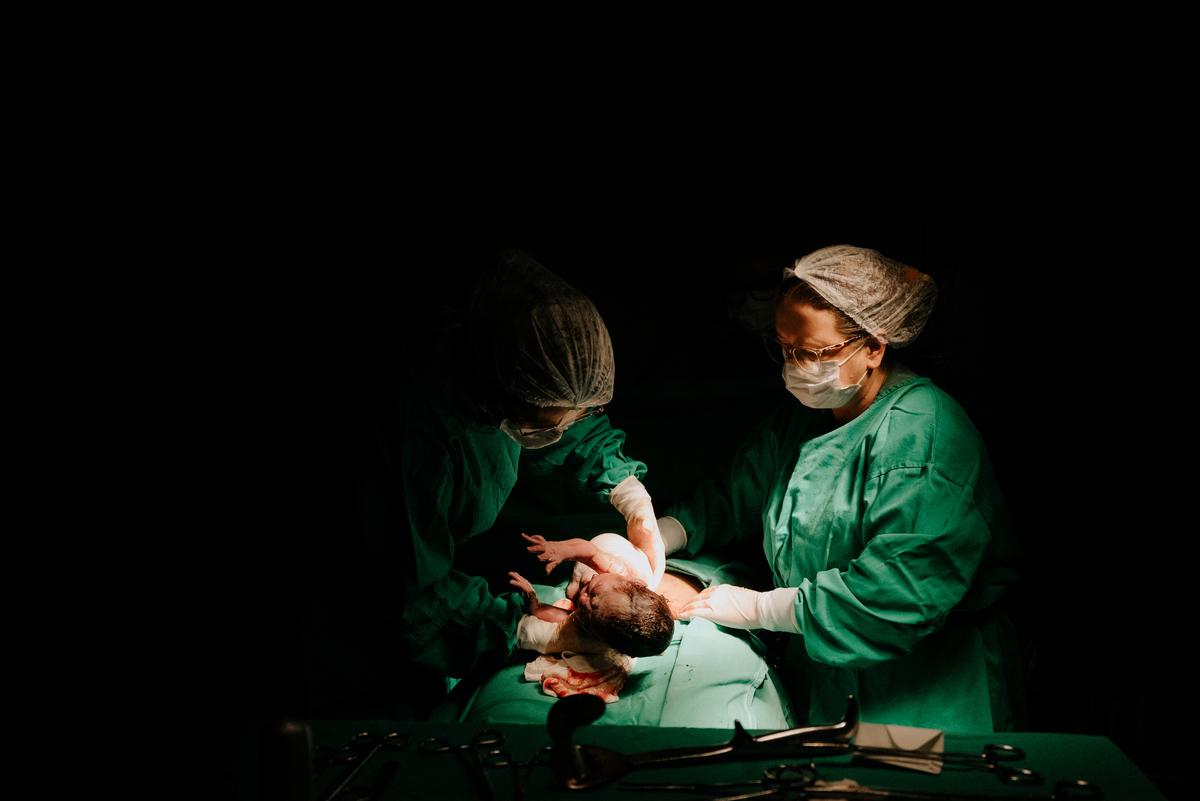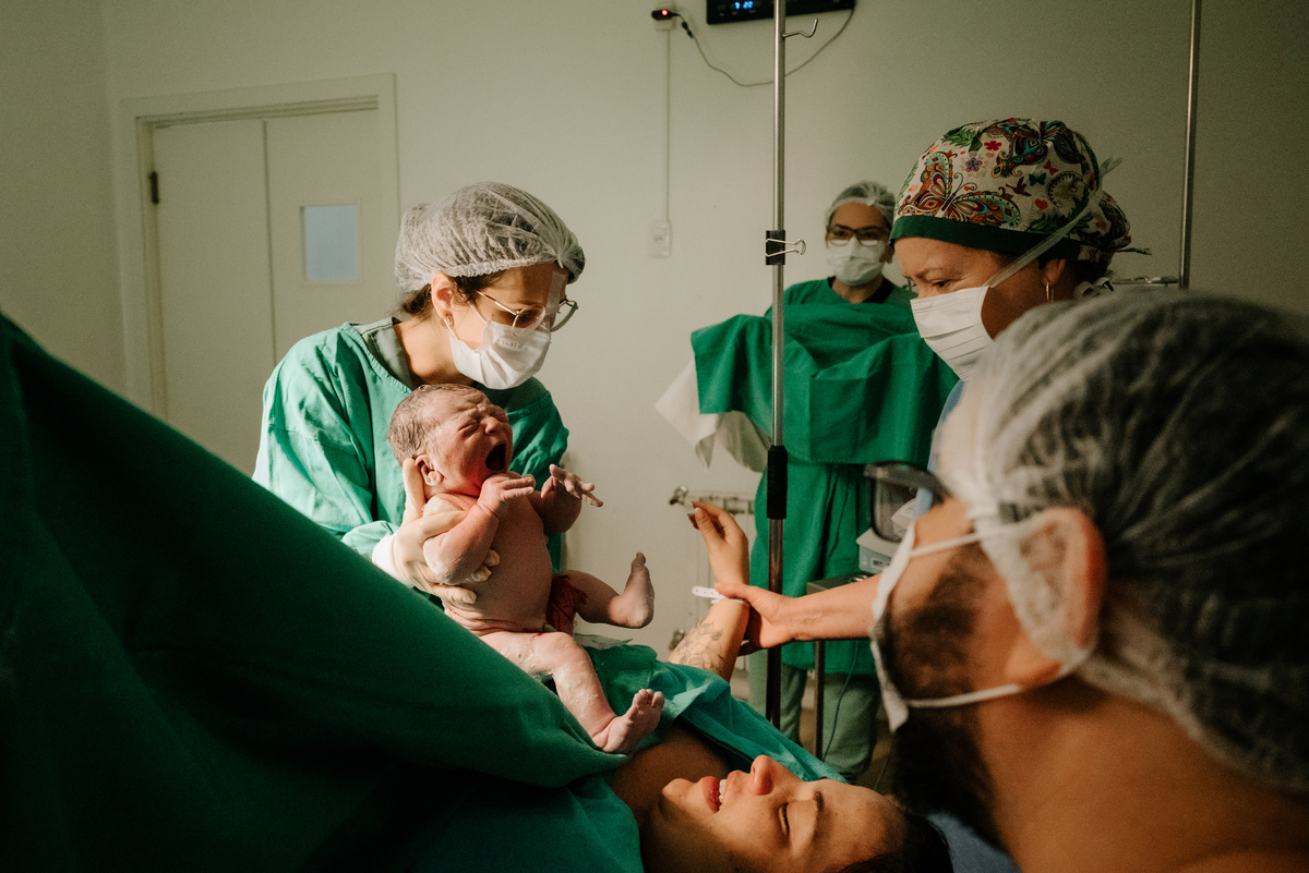 Após horas e mais horas de trabalho de parto, a decisão pela cesariana se fez necessária, mas isso não diminuiu a beleza e a emoção do momento.