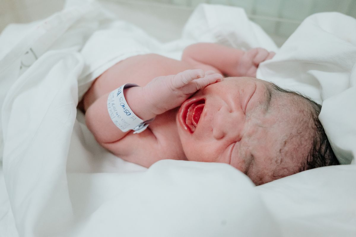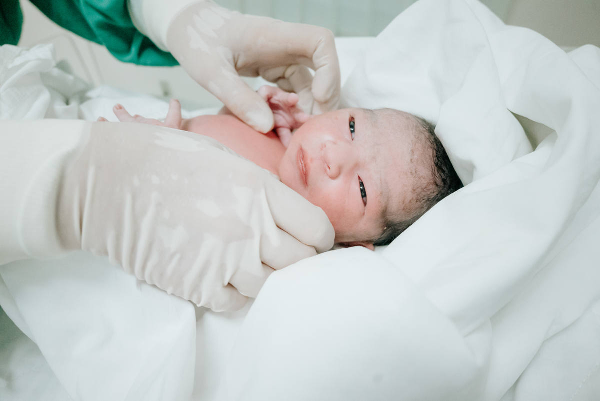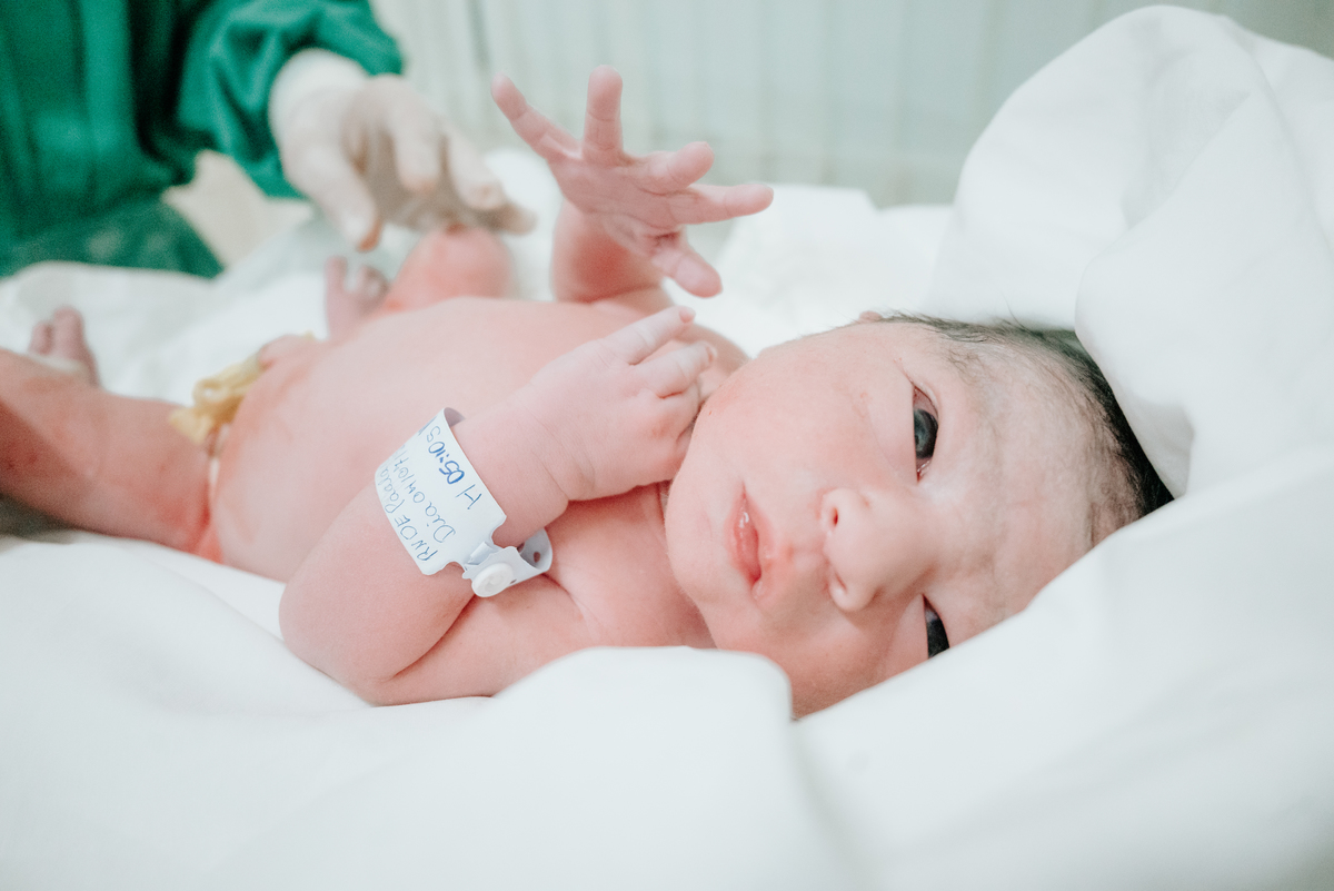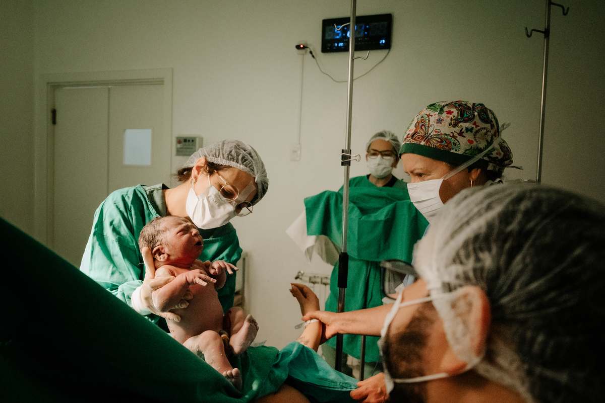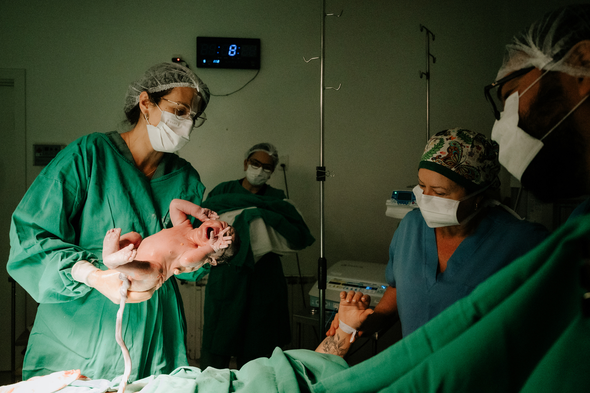 Após horas e mais horas de trabalho de parto, a decisão pela cesariana se fez necessária, mas isso não diminuiu a beleza e a emoção do momento.