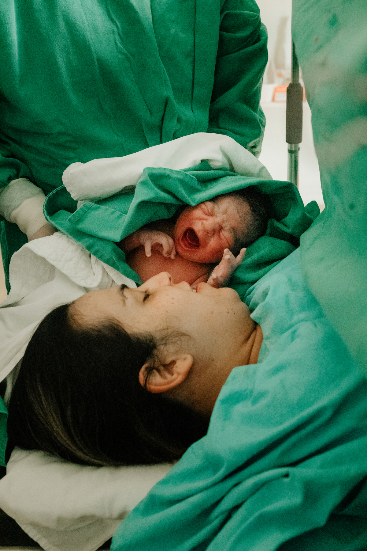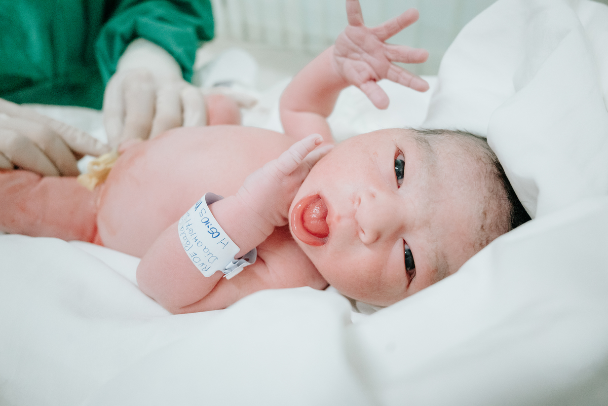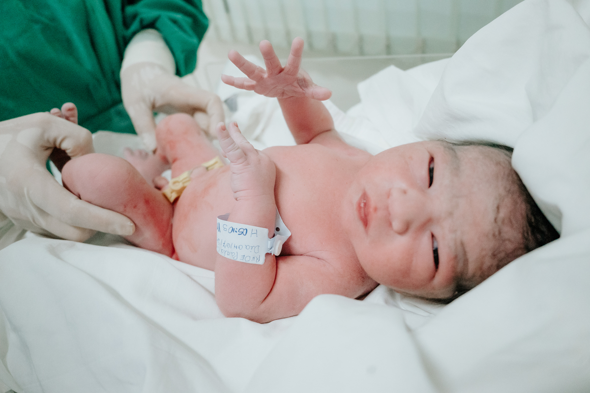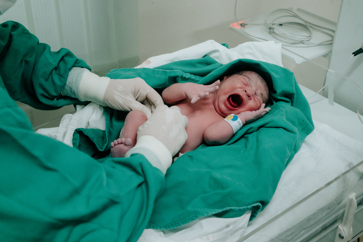 Após horas e mais horas de trabalho de parto, a decisão pela cesariana se fez necessária, mas isso não diminuiu a beleza e a emoção do momento.