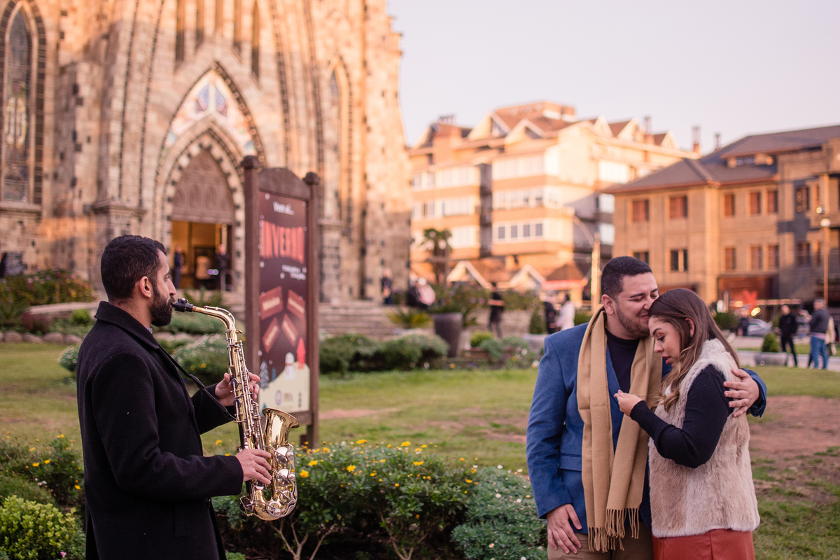 O Fábio me encontrou há tempos, começamos a conversar e planejar esse grande momento. Ele cuidou de todos os detalhes, de uma forma super organizada e carinhosa. Até mesmo o Uber estava envolvido, um saxofonista e eu - todos ali desejando somente o que há de melhor pra eles dois.