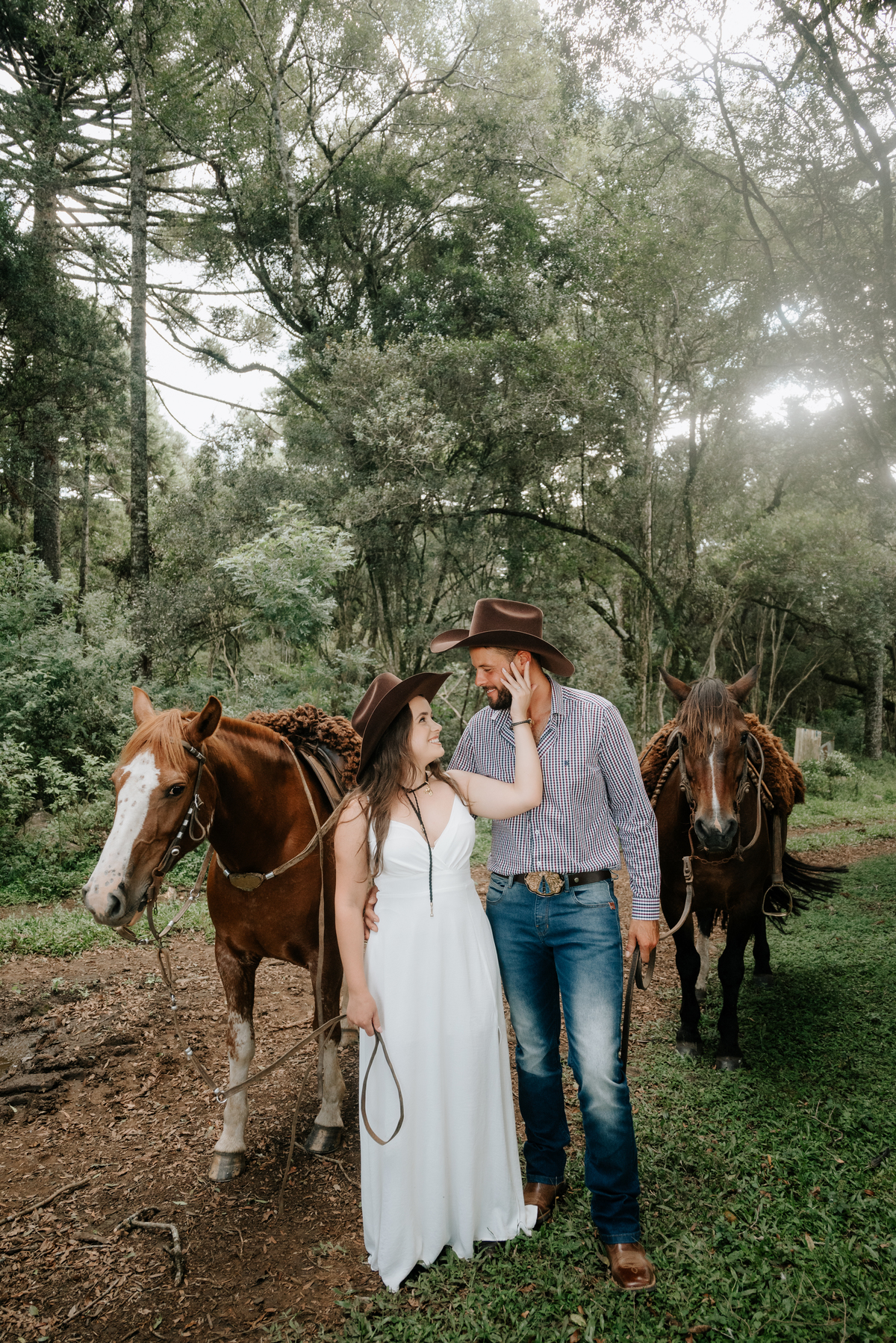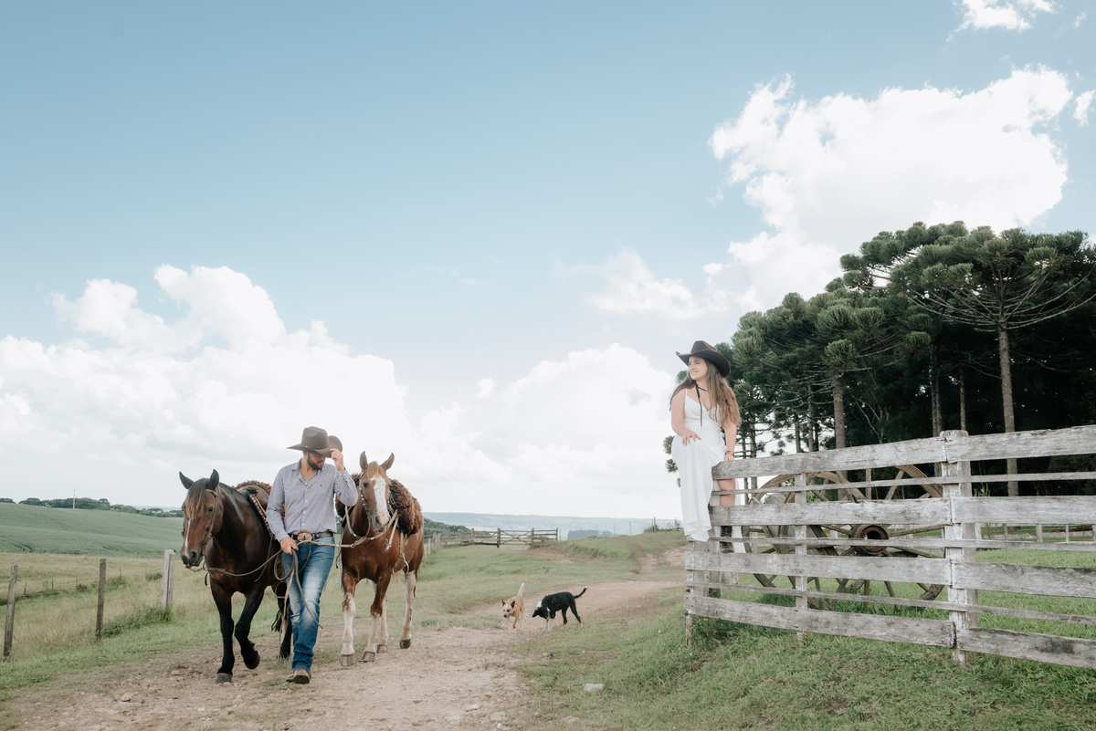 Nos conhecemos nesse dia, eles já haviam preparado os looks e feito um chimarrão pra me aguardar. Tomamos umas cuias juntos, se arrumaram enquanto eu me divertia com os cachorros e conversava com os proprietários do local. Depois dali prepararam os cavalos, fomos passear pela fazenda e o resultado não podia ser diferente.