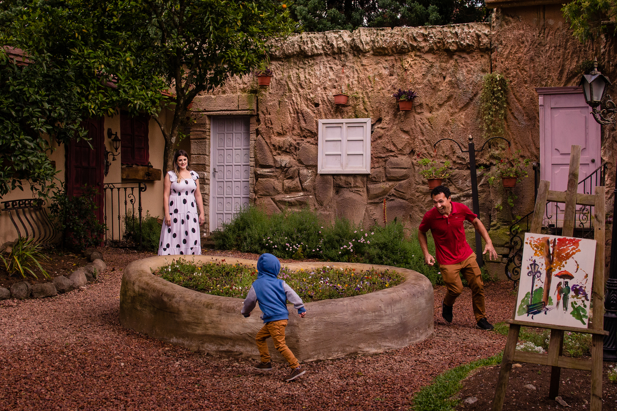 Quase 4 anos depois reencontrei esse casal, agora com o pequeno Enzo. A Jaque e o Cristino foram um dos meus primeiros clientes, lá no comecinho da minha carreira como fotógrafa (quando ainda trabalhava como jornalista, minha formação) realizei um sorteio e eles foram os premiados, esse casal amado de São Leopoldo. Lembro com carinho que fizemos o ensaio na Fonte do Amor Eterno - com certeza um dos primeiros realizados por ali.